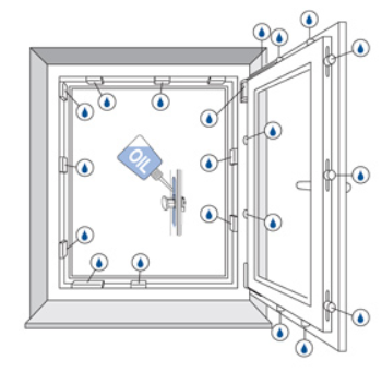 Smarowanie okuć powinno być przeprowadzane co najmniej raz w roku.